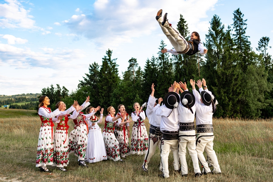 Jak zwykle moja zwariowana osoba natrafiła na bratnie dusze. Warto tu od razu poruszyć temat rodzeństwa i znajomych – wymarzona obstawa. Ich kolorowe regionalne stroje zrobiły świetną robotę.