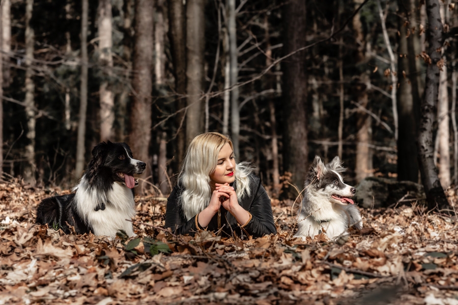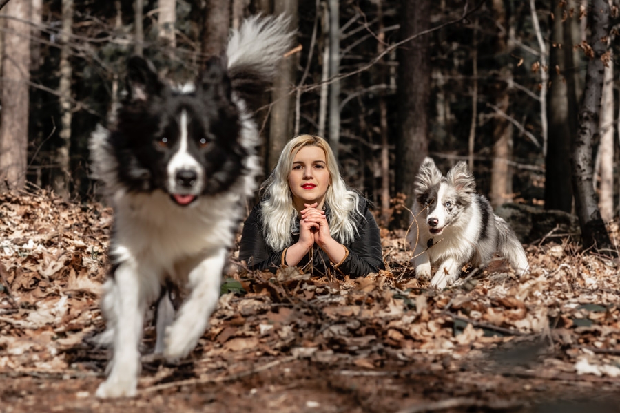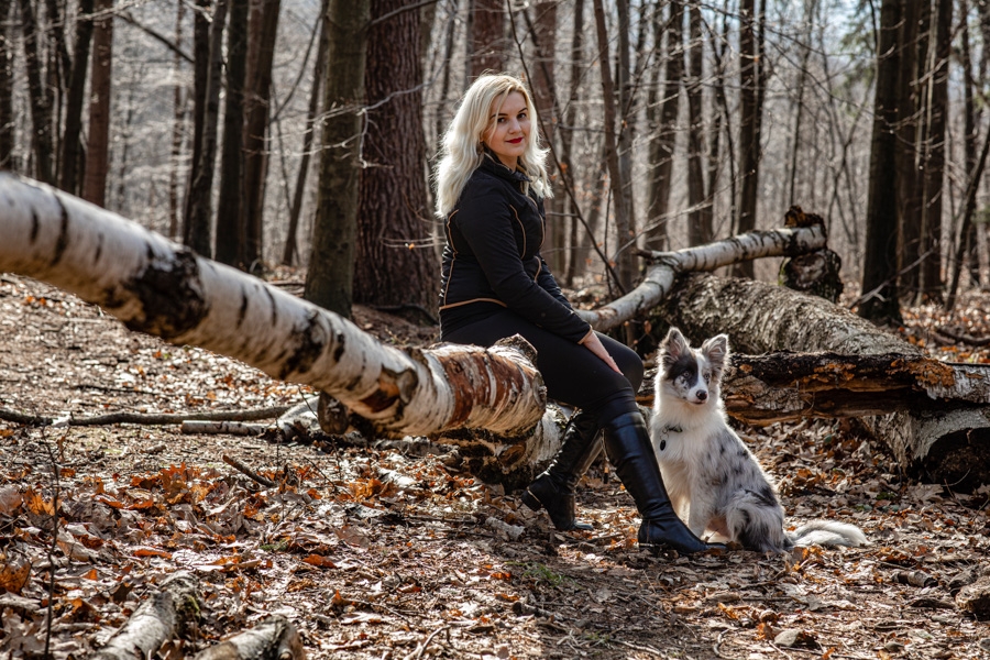 No i w końcu się udało, po długich próbach zgrania wolnego czasu z dostępnością idealnych modeli mamy sukces. W ogromnym zamieszaniu związanym z fotografią ślubną nadszedł czas na chwilę wyluzowania i realizacji czegoś odmiennego. Kocham zwierzęta i zdjęcia właściciela z czworonogiem wcześniej czy później musiały się tu znaleźć. Co mogę powiedzieć o przebiegu sesji? Na pewno podejście jest inne niż przy pracy tylko z ludźmi. Na nic nie przyda się cały bagażnik lamp, wyzwalaczy czy akcesoria do modelowania światła. Wystarczy szybki aparat i długi obiektyw. Ujęcia że tak powiem z gleby, czyli garnitur i krawat też odpada, bo tarzanie po ziemi to normalność.