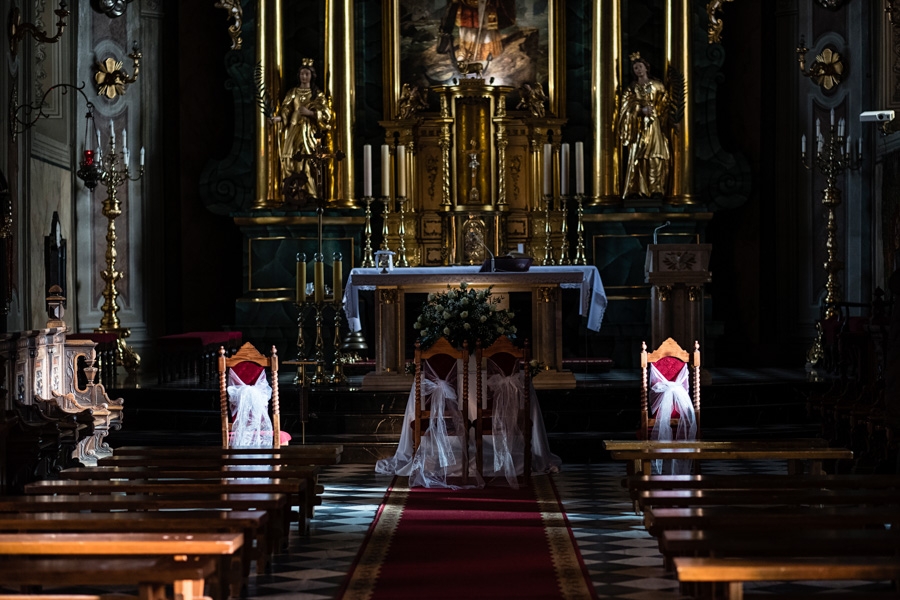 Tam też było w przypadku Karolinki i Michała. Ta Para nie postępowała pochopnie w żadnej sytuacji, starannie dobierała każdy szczegół co zaowocowało 100% zadowolenia i 0% wpadek. Osobiście z tymi Cudownymi ludźmi spotkałem się 6 miesięcy przed planowaną datą ślubu. Teraz gdy jest już po weselu rozmawiając z Karoliną i Michałem ciągle wspominamy to spotkanie w jednej z restauracji w Kalwarii Zebrzydowskiej. Walizka z albumami, dobre nastawienie i ok 3 godziny rozmowy z czego o fotografii pewnie 30 minut. Nie cierpię namawiania i ściemniania o tym, aby już dziś i teraz podpisywać umowę i zarezerwować termin bo w kolejce są jeszcze cztery pary (takich tekstów używają Janusze chcący szybko sobie zapchać kalendarz) Ja dałem im czas do namysłu choć od razu po spotkaniu wiedziałem że to Para idealna dla mnie. Na kontakt czekałem kilka tygodni i się doczekałem